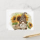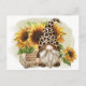Un pequeño y adorable gnomo en una huella de leopardo ha reunido algunos girasoles.
