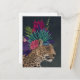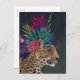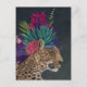 Hot House Leopard 1 de Fab Funky. Un leopardo reposa con flores tropicales y vegetación en la cabeza como una cabecera. | 192441GG