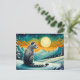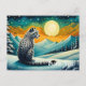Un leopardo de las nieves con una postal de fondo de noche de montaña nevada. Personalizar fácilmente el mensaje para sus necesidades.