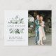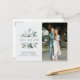 Anuncia la fecha de tu boda con este diseño elegante que tiene letra script con hojas de eucalipto y una foto de la pareja . El texto es editable junto con la encantadora imagen.
