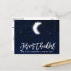 Letra de Pincel Moderna, Boda Celestial Por Siempre Agradecida, Tarjeta de agradecimiento. Cielo nocturno azul con estrellas y luna en acuarela.