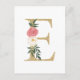 Carta elegante moderna y original E monograma postal. Cuenta con flores acuáticas, vegetación y letras falsas de Relieve metalizado dorado.