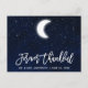 Letra Pincel Moderna, Boda Celeste Por Siempre Agradecido, Tarjeta postal de agradecimiento. Cielo nocturno azul con estrellas y luna en acuarela.