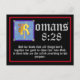 Cita de la Biblia del Nuevo Testamento. Cita de la Biblia inspiradora de los romanos 8:28. Con una letra R azul y dorada iluminada para los romanos, y una cita tipográfica de escritura religiosa de estilo antiguo. Desde la epístola de Paul el apóstol hasta el capítulo 8 de los romanos, versión 28: "Y sabemos que todas las cosas funcionan juntas para bien para los que aman a Dios, para los llamados según su propósito" (versión del rey James) Se puede personalizar el texto para usarlo con otros versos de la Biblia romana, o cambiar la cita de la escritura para su versión favorita de la traducción de la Biblia.