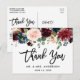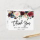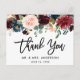 Tarjeta Postal de Agradecimiento de Boda con Letras Pincel Modernas Burgundy Azul Floral
