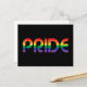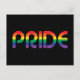 Este colorido diseño arcoiris presenta la palabra Orgullo.