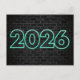 Letrero de neón verde de año nuevo 2026 en una pared de ladrillo oscuro para agradecer a un negocio.