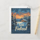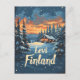 Un retrato pintoresco y nostálgico de Levi, Finlandia, durante la temporada invernal, destaca sus impresionantes paisajes nevados y su ambiente encantador. El diseño capta la inmaculada nieve blanca que cubre la selva del Ártico, con árboles nevados, cabinas de troncos acogedoras y las luces del norte bailando en el cielo estrellado. La obra de arte, de estilo vintage, evoca la belleza tranquila y el ambiente mágico de Levi en invierno, invitando a los espectadores a experimentar su combinación única de naturaleza y tranquilidad.