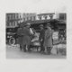 Un grupo de hombres leyendo periódicos en un puesto de noticias de la ciudad. 1925.