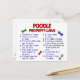Crea una risa, o dos, con nuestros humorísticos regalos, camisetas, tés, ropa y mercadería de las Leyes de la Propiedad Poodle. Estas divertidas, y tan ciertas, reglas del perro seguro que serán un éxito con cualquier dueño de un perro. Hace una idea de regalo ideal para ese amante de Poodle tan difícil de conseguir en tu lista!