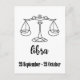 Esta postal muestra una hermosa representación del signo de Libra zodiac, caracterizado por el símbolo de las escalas. El diseño muestra los rasgos únicos y las características de Libra, incluyendo su amor por el equilibrio y la armonía en la vida. Los colores vivos y los detalles intrincados hacen de esta postal un regalo perfecto para los entusiastas de la astrología o para cualquiera que nazca bajo el signo de Libra zodiac. Libra, Zodiac Rótulo Postcard, 23 de septiembre a 23 de octubre