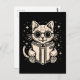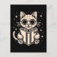 Gato leyendo una postal de un libro de fantasía. Un gato lindo leyendo un libro de decoración de la sala de ilustraciones de galaxia celestial retro. Gato negro y beige con estética de libros y pequeñas huellas. La idea de los libros de fantasía es un regalo de amor.