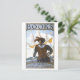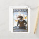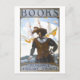Esta postal es una reproducción de un poster de alfabetización de la biblioteca vintage que muestra a un explorador y lee: "Libros: romance, historia, viajes".