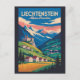 Liechtenstein retro vector travel design. With highlights like Vaduz Castle and sweeping views of the Rhine Valley, it’s a picturesque destination nestled between Switzerland and Austria.