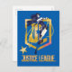 Echa un vistazo a la Mujer Maravilla de la Liga de la Justicia sosteniendo su Lasso de la Verdad, lista para lanzarlo. Este contraste con el dibujo de arte pop de Wonder Woman se coloca encima del logo de un escudo de la Liga de Justicia Justa dorada, con el logo del nombre de la Liga de Justicia escrito abajo.