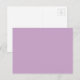 Postales en blanco "Lilac" de color medio y sólido (con color sólo en la parte delantera). Lilac es de color púrpura claro a medio. Haga clic en "Personalizar" para cambiar de color o para agregar texto o un diseño. Código hexadecimal del producto: #c8a2c8