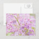 Foto macro de flores lílicas tiernas de color rosa y morado contra fondo verde claro. Fotografía texturizada. Feliz primavera.