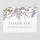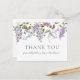 Elegante tarjeta de agradecimiento que presenta una cascada de acuarela de lilas y vegetación. Personalice con su información o haga clic en "Haga clic para personalizar aún más" para editar estilos de fuente, tamaño y colores. También se puede personalizar en la parte posterior con su propio mensaje mecanografiado o eliminar este espacio para escribir a mano su agradecimiento.