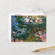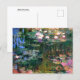 Postal de arte fino con pintura de paisaje, Water Lilies (1917) de Claude Monet (1840-1926). Un estanque de nenúfares con colchas de lirios de flores blancas y rosas que reflejan el agua, inspirado en sus propios jardines acuáticos en Giverny, Francia.