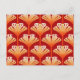 Postcard en una reproducción de un lirio estilizado, Art Deco, fondo de pared - un gradiente de flama profunda naranja al blanco, acentuado con oro mostaza, sobre un fondo profundo naranja de mandarina