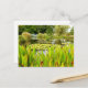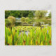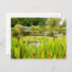 Hermosa laguna de lirios con un puente arqueado reflejado en el agua
