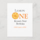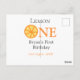 Postal Limoncita feliz 1er cumpleaños naranja gris retro