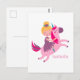 Postal Linda niña de pelo amarillo montada en un unicorni