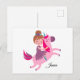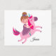 Postal Linda niña de pelo rubio montando un unicornio