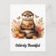 Postal Linda Nutria Con Comida De Acción De Gracias y Mar