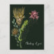 Hazle saber a alguien que estás pensando en ellos con esta linda tarjeta postal que presenta una ilustración botánica única con un camaleón enano del Cabo en un ramo de flores de protea o un fondo verde profundo. Esta ilustración fue dibujada a mano con pluma y tinta y luego pintada digitalmente. Fue inspirada por la increíble flora y fauna de Sudáfrica.