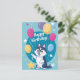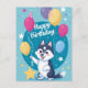 Un lindo Husky con globos de cumpleaños desea Feliz Cumpleaños