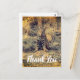 Un curioso bebé bobcat mirándote directamente. Foto de gato salvaje lindo. Personaliza el mensaje de texto "gracias" para tu familia, amigos o invitados. Puedes transferir la foto a otros regalos. Hay hierbas secas del desierto en la foto.
