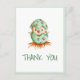 Tarjeta de agradecimiento neutral en cuanto al género con un pequeño pájaro saliendo de su huevo. Ideal para baby showers y primeros cumpleaños. Ilustrado y diseñado por Patricia Alvarez.