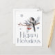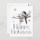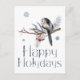 Tarjeta de vacaciones de invierno elegante con la imagen de un pájaro lindo que se sienta en una rama de pino y se prepara para comer algunas bayas rojas cubiertas con nieve fresca de invierno. El texto decorativo Felices Fiestas se encuentra debajo de la imagen, y copos de nieve de color plateado vuelan alrededor de la imagen. Envíe sus deseos más cordiales y cálidos a su familia, parientes y amigos. Puede transferir este diseño a una serie de otros productos, incluyendo imanes, tarjetas, carteles, rompecabezas. Este diseño es personalizable. Puede cambiar la imagen. Si desea cambiar el tamaño de la imagen o recomponerla en un producto elegido, no dude en utilizar el botón "Editar diseño" o "Personalizar" (según sea el caso) de color azul. Será transferido a la "Herramienta de diseño" donde puede cambiar el tamaño, reubicar imágenes en el panel del menú derecho y puede agregar texto en el panel del menú izquierdo. Simplemente sea creativo,