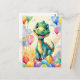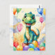 Postal Lindo pequeño dinosaurio con muchos globos de colo