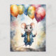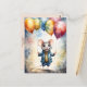 Esta tarjeta postal presenta un lindo ratón con chaqueta y pantalones, sosteniendo muchos globos en sus manos. Arte digital - acuarela. Un motivo súper lindo para niños! La parte trasera es personalizable: puedes eliminar o cambiar el color, texto e imagen a tu gusto.