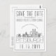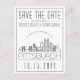 Una postal única para un matrimonio que se celebra en la hermosa ciudad de Pittsburgh, Pensilvania. Esta invitación presenta un ilustracion estilizado del paisaje único de la ciudad con su nombre debajo. A esto le sigue la información del día de la boda en un estilo de línea abierta que coincide. En el reverso de la publicación está la información de dirección. Todos los elementos individuales de la tarjeta de invitación están desbloqueados, por lo que puede cambiar cualquier detalle necesario, como tamaños de letra, estilos y más, utilizando la función de personalización. Puede agregar una foto al reverso y agregarle un filtro en blanco y negro. ¡Diviértete siendo creativo y hazlo tuyo!