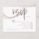 Un estilo contemporáneo moderno con líneas circulares artificiales en tonos beige cremoso y el cabezal rsvp se encuentra en un gran guión elegante en minúsculas. El resto del texto es un pequeño serif bellamente contrastante y se puede personalizar fácilmente. En la parte posterior, hay líneas circulares que se pueden llevar a través del tema y se puede personalizar con su nombre y dirección de retorno para facilitar que los destinatarios simplemente lo completen y lo vuelvan a mostrar en el mensaje.