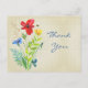 Esta tarjeta postal presenta un fondo con textura de lino con un ramo de flores pintadas. Utilice esta tarjeta para dar las gracias o cambie el texto para adaptarlo a sus necesidades.