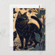 Postal Linocut de un gato negro entre plantas con ba amar