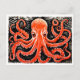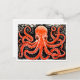 Postal Linocut de un pulpo rojo en blanco y negro