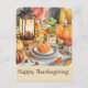Celebre la calidez y la unión de esta temporada de Gratitud con esta hermosa tarjeta de felicitación ilustrada. El diseño presenta una escena en acuarela acogedora e invitadora de una mesa festiva de Acción de Gracias, adornada con calabazas, hojas de otoño y una linterna brillante. Perfecta para enviar mensajes sinceros a seres queridos, esta tarjeta captura la esencia de la temporada de fiestas. Comparta la alegría y la gratitud de Acción de Gracias con esta encantadora y elegante tarjeta de felicitación.