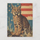Celebre la majestuosa belleza del lince y el espíritu de América con esta postal de estilo vintage con un lynx enmarcado por la bandera estadounidense. Este impresionante diseño combina la elegancia salvaje de uno de los depredadores más esquivos de la naturaleza con el simbolismo patriótico. Perfecto para coleccionistas, entusiastas de la vida salvaje, o como un conservador único, esta postal encarna el indomable encanto de la naturaleza salvaje y el orgullo nacional.