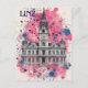 Esta postal de viaje, en estilo ilustracion de pintura al óleo, muestra la arquitectura europea con una muestra de Linz, Austria.