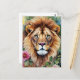 Las obras de arte de la acuarela de postales cuentan con un león, rey de la jungla, en un entorno botánico con detalles florales. El fiero se enfrenta hacia delante en un retrato que destaca el poder y la belleza de la naturaleza. ¡Ideal para los amantes de los grandes gatos y de los zodiac Leos!