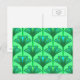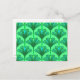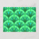 Postal con reproducción de lirio estilizado, Art Deco, fondo de pared - gradiente suave de verde jade oscuro a medio, acentuado con azul turquesa/pavo real, sobre fondo verde jade claro
