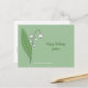 Una postal de cumpleaños verde con un lirio botánico del ilustracion florido del valle en colores pastel (Convallaria majalis) y textos de personalizable (arriba y abajo): perfecto para acompañar un regalo o mandar a tu mejor amigo. En la parte trasera hay un lirio del valle en línea de arte. Lily del Valle es la flor de nacimiento de Mayo, la flor de Taurus y sus significados simbólicos de amor, suerte, pureza, maternidad y humildad.