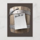 Cubo vintage de madera con soporte para anillos metalizado y mango y papel en blanco pegado al frente con la lista de cubos de palabras