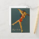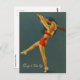 Tarjeta clásica PinUp que muestra un hermoso chica de pinza tratando de poner en marcha el motor de un avión con hélice, pintado por Al Buell (1910-1996)