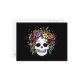 Calavera de bonito con un ramo de flores de pelo. Coloridas, camisetas, sudores, cartas, regalos.